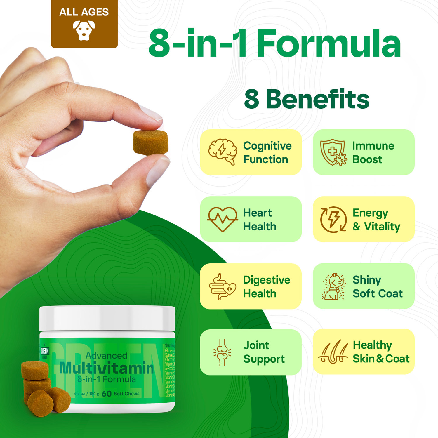 That’s why we created this 8-in-1 Multivitamin for Dogs — a powerful daily soft chew that delivers all-around support for your dog’s health and happiness.