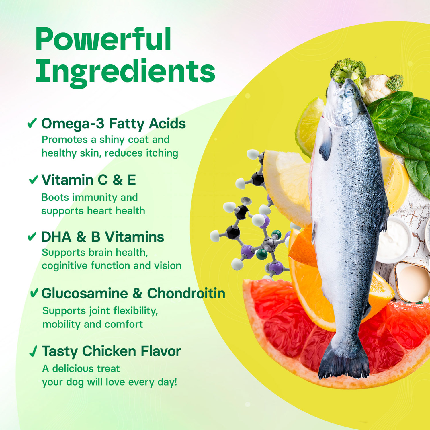 Vet-Formulated for All Breeds & Ages: Whether you have a growing puppy or a wise senior, our formula provides daily health support to help your dog thrive from head to tail.